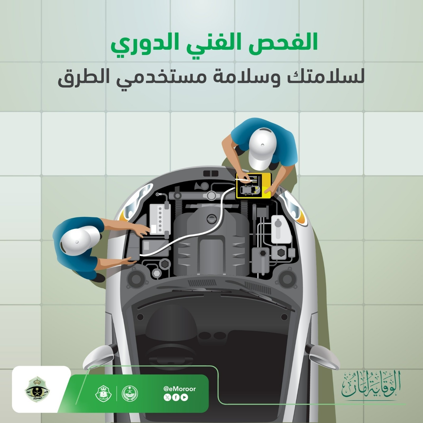 وأوضحت على حسابها في منصة إكس، أن الفحص الفني الدوري خطوة أساسية للتأكد من صلاحية المركبة.