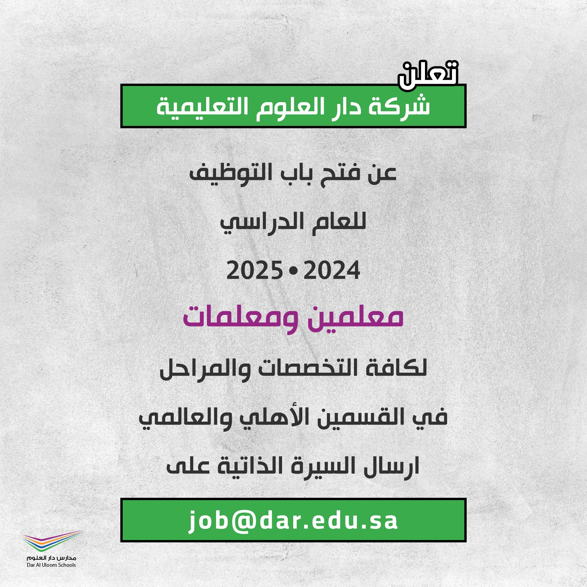 وظائف تعليمية (جميع التخصصات) للجنسين لدى مدارس دار العلوم