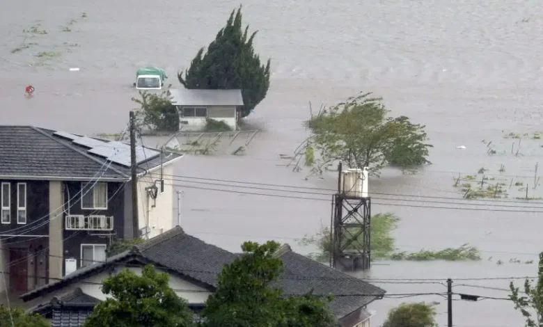 لحظة إجلاء آلاف السكان في اليابان عقب اجتياح الإعصار شانشان