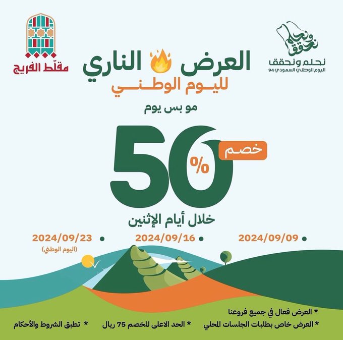 هنـا جمعت لكم عروض اليوم الوطني اللي بتدت من الان إلى يوم ٢٣ سبتمبر