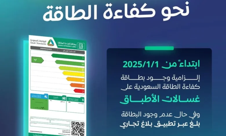 أعلن المركز السعودي لكفاءة الطاقة البدء بإلزامية بطاقة كفاءة الطاقة على غسالات الأطباق لدى جميع منافذ البيع في المملكة وذلك بدءًا من 1 يناير 2025م ، مهيبًا بالمستهلكين الراغبين في شراء هذا النوع من الأجهزة التأكد من وجود هذه البطاقة على الجهاز والإبلاغ في حال عدم وجودها عبر تطبيق “بلاغ تجاري”.