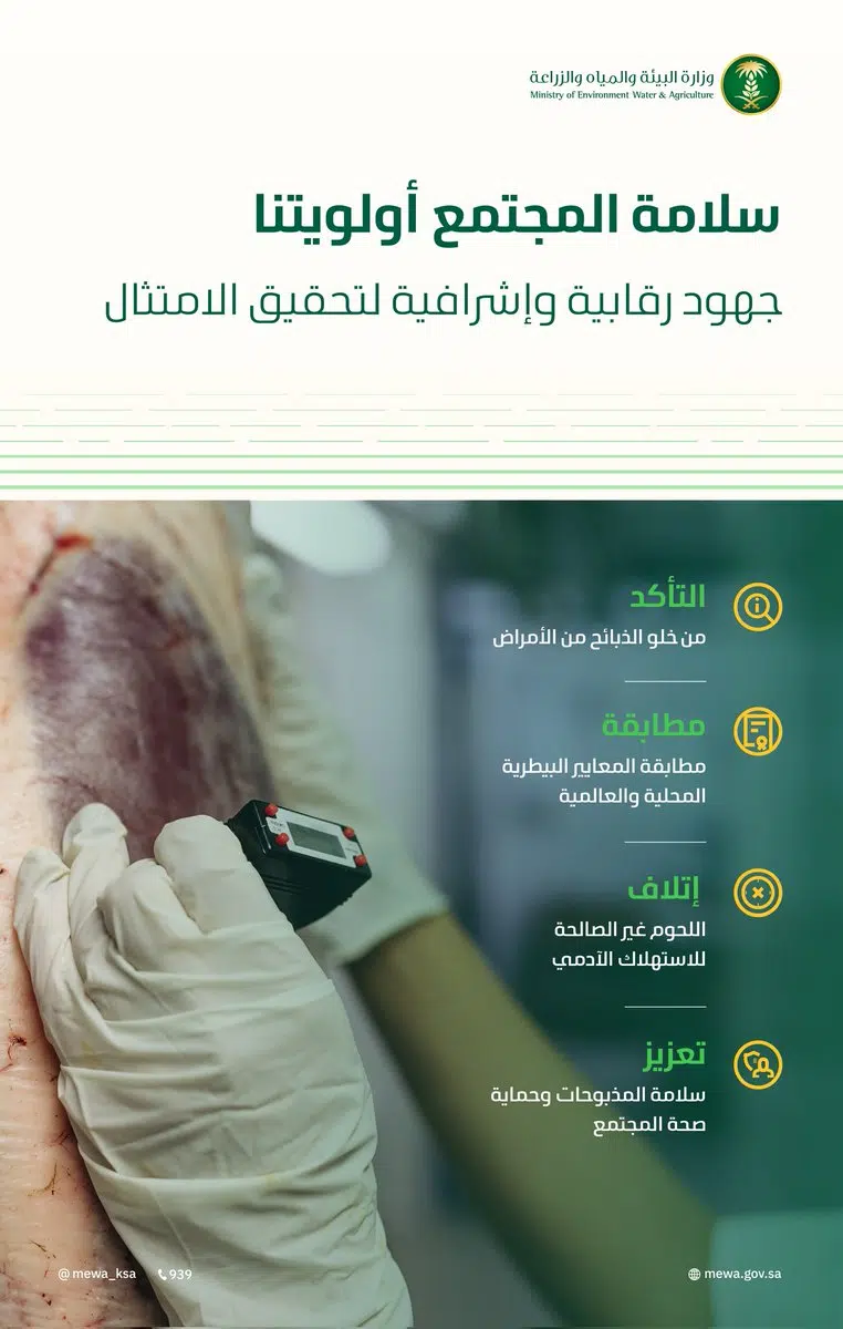 ضمان مطابقة اللحوم للمعايير البيطرية المحلية والعالمية.