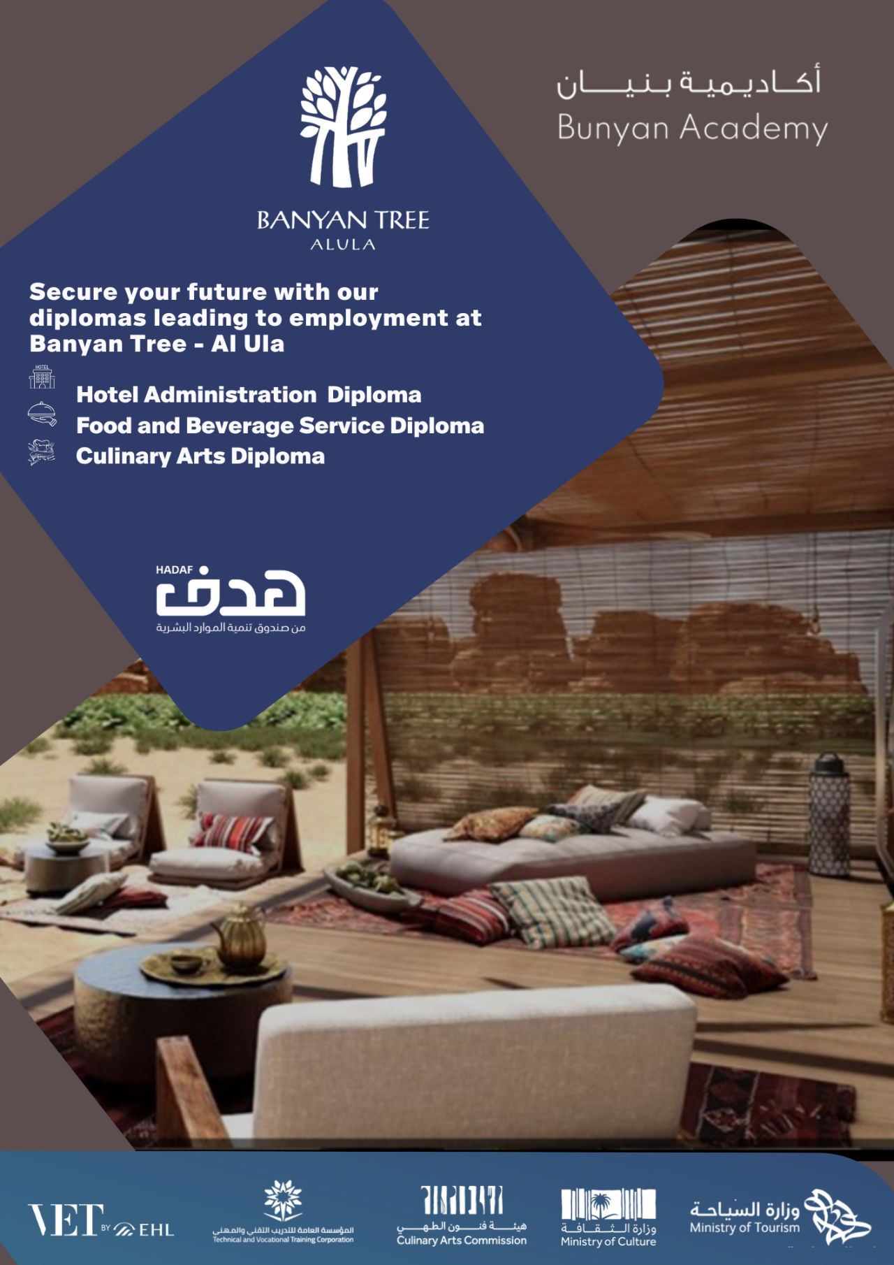 تدريب منتهي بالتوظيف في منتجع بنيان تري بالعلا (مكافأة 2,000 ريال + سكن رمزي) ثانوية فأعلى