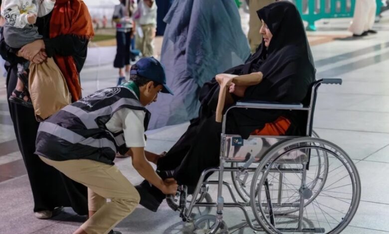 في مشهد يجسد قيم العطاء والتراحم، وثقت صورة لمتطوع وهو يقدم المساعدة لحاجة مسنة تجلس على كرسي متحرك في ساحات المسجد النبوي، حيث حرص على تعديل وضع قدميها لضمان راحتها أثناء تنقلها.