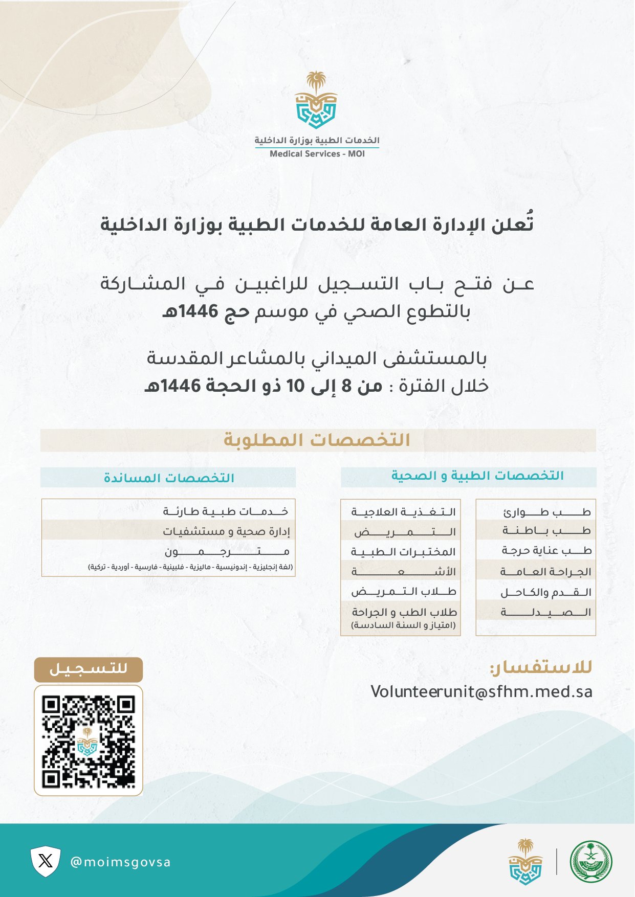 الخدمات الطبية بوزارة الداخلية (التطوع الصحي لموسم حج ١٤٤٦هـ)