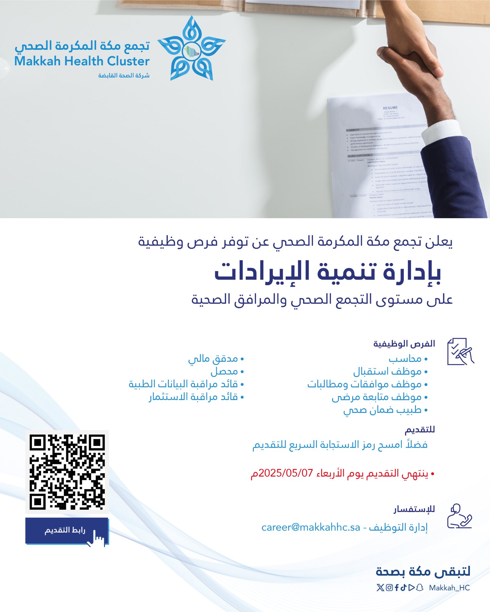 أعلن تجمع مكة المكرمة الصحي عن توفر فرص وظيفية (رجال / نساء) لحملة الثانوية فأعلى للعمل بإدارة تنمية الإيرادات على مستوى التجمع الصحي والمرافق الصحية، وذلك وفقاً للتفاصيل وطريقة التقديم الموضحة أدناه.