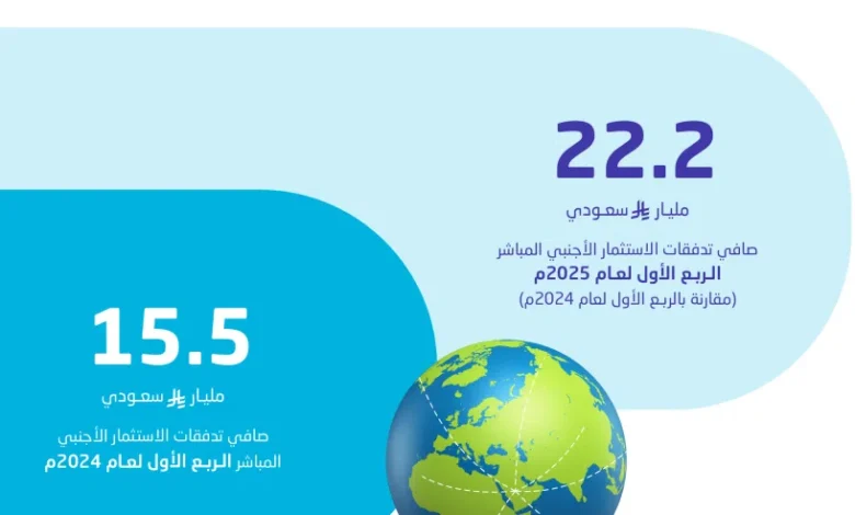 22.2 مليار ريال قيمة صافي تدفقات الاستثمار الأجنبي المباشر للربع الأول 2025