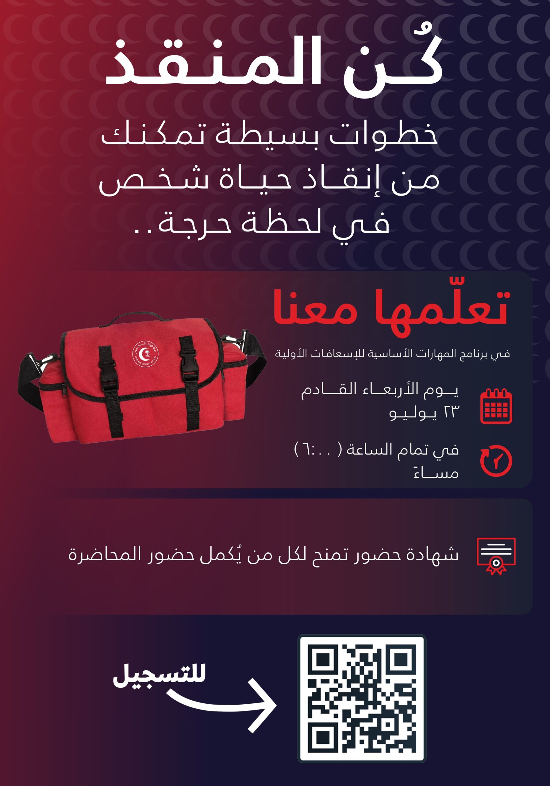 (عن بُعد) هيئة الهلال الأحمر تعلن دورة مجانية للجميع (طوّر مهاراتك)