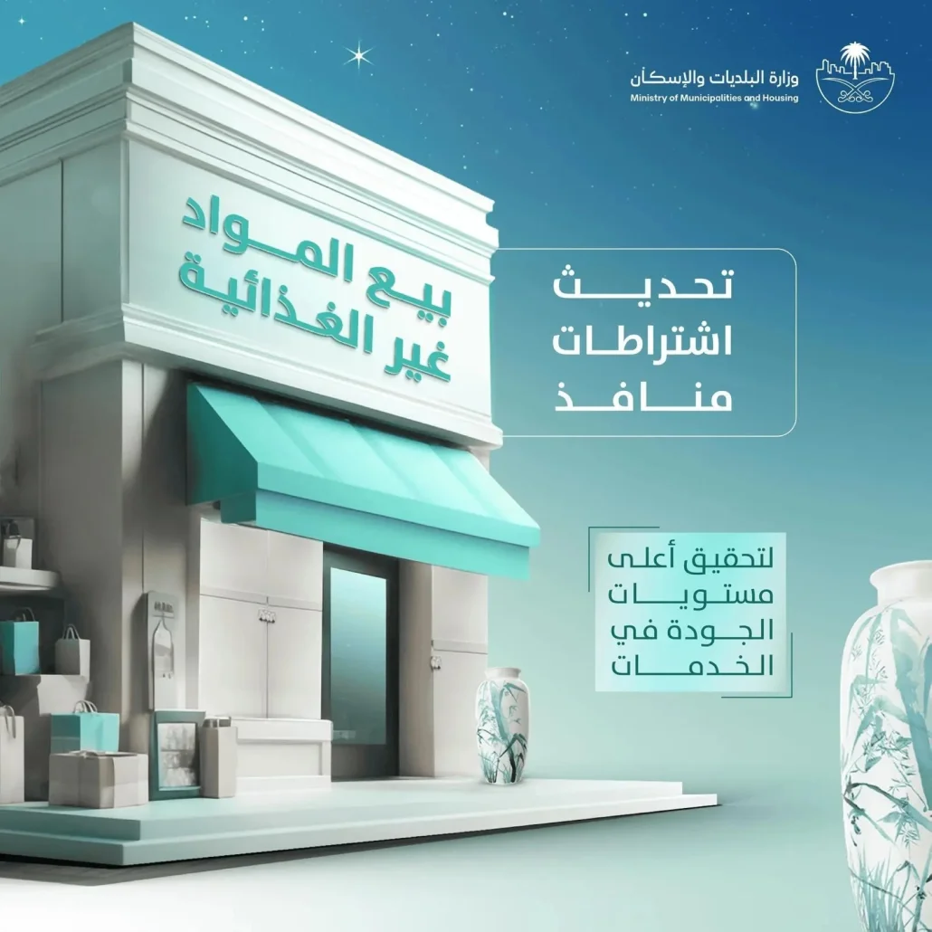 أعلنت وزارة البلديات والإسكان، تحديث اشتراطات منافذ بيع المواد غير الغذائية، وذلك في إطار جهودها لمعالجة مظاهر التشوه البصري، وتعزيز الامتثال للاشتراطات البلدية، وتنظيم بيئة الأعمال التجارية، بما يُسهم في تحقيق الأهداف التنموية للقطاع، ويدعم المستثمرين على التوسع وتطوير أنشطتهم التجارية.