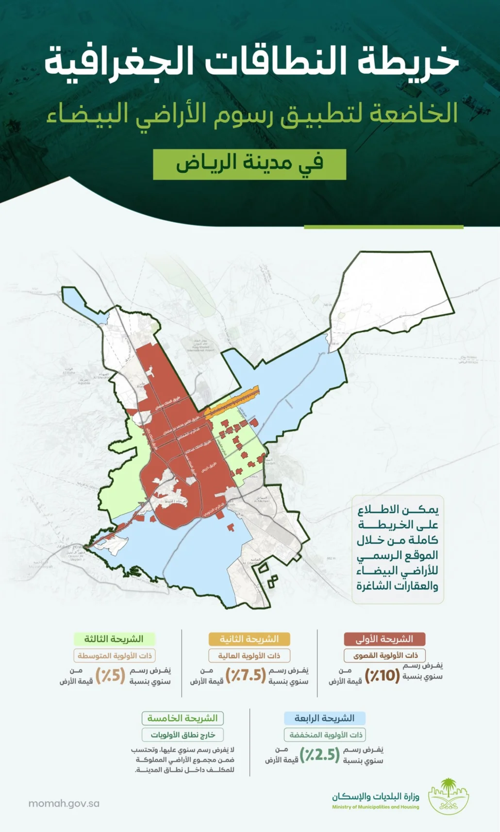 إعلان النطاقات الجغرافية لرسوم الأراضي البيضاء بالرياض