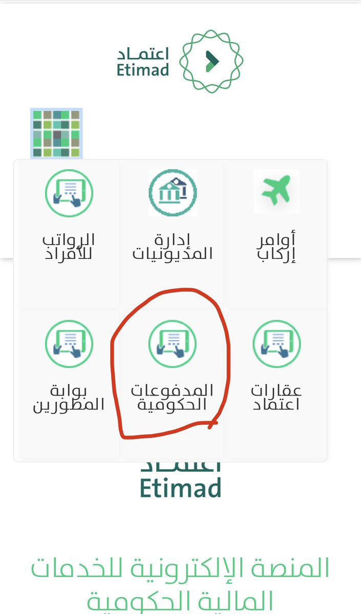 اختر المدفوعات الحكومية ( كما هو موضح في الصورة ادناه ) .