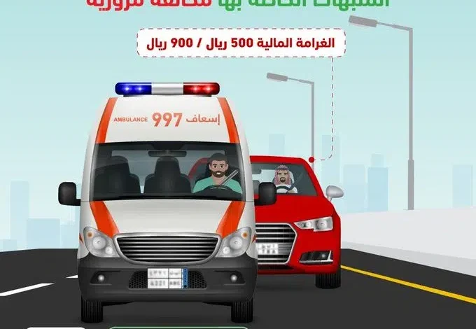 900 ريال غرامة ملاحقة مركبات الطوارئ أثناء تنفيذ مهامها