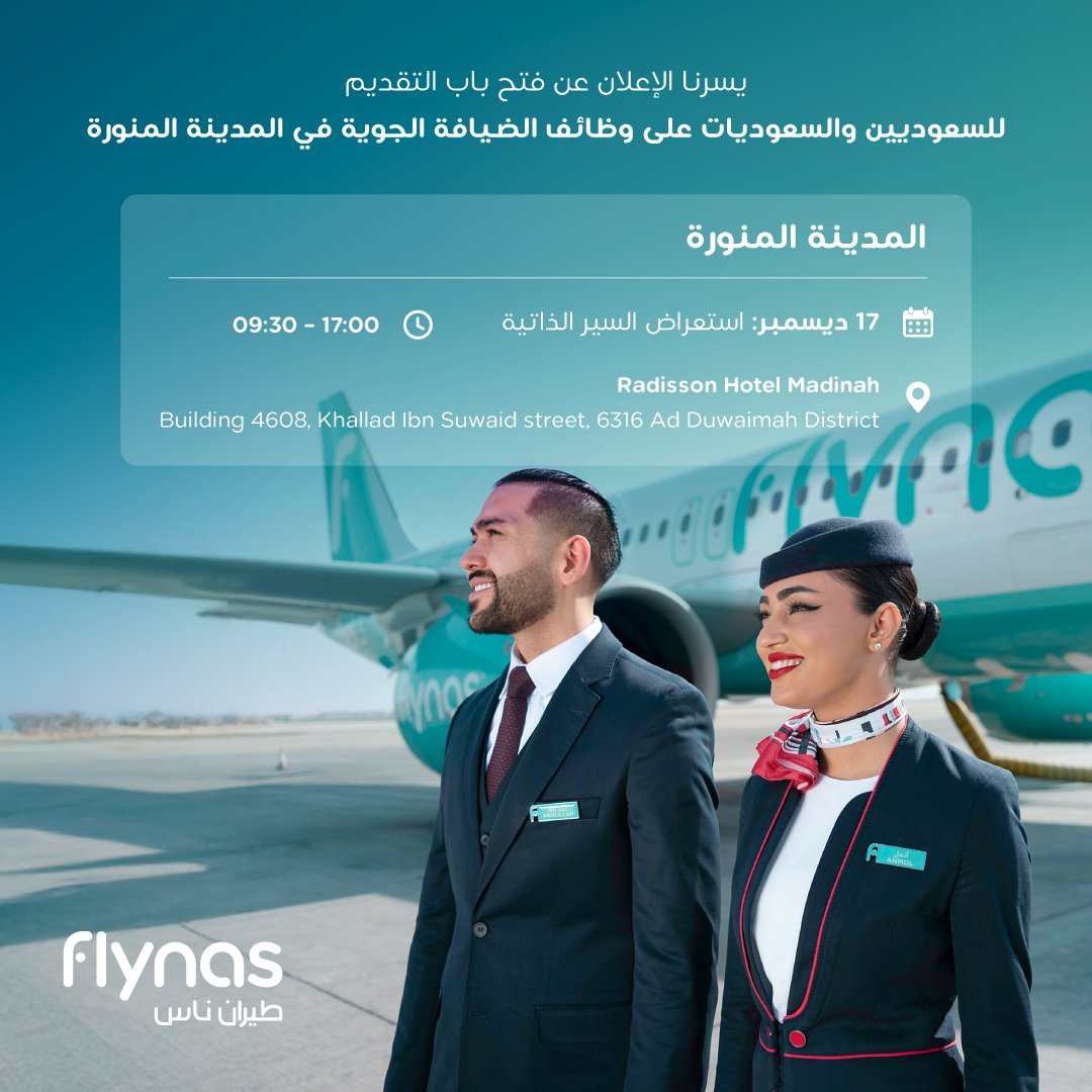 طيران ناس (فتح باب التقديم) لوظائف الضيافة الجوية للجنسين بالمدينة المنورة