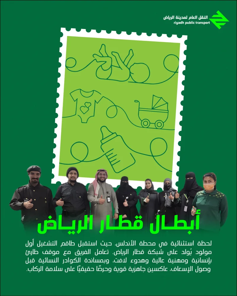 احتفى النقل العام لمدينة الرياض، بلحظة استثنائية مؤثرة في محطة الأندلس، حيث استقبل طاقم التشغيل أول مولود يُولد على شبكة قطار الرياض.
