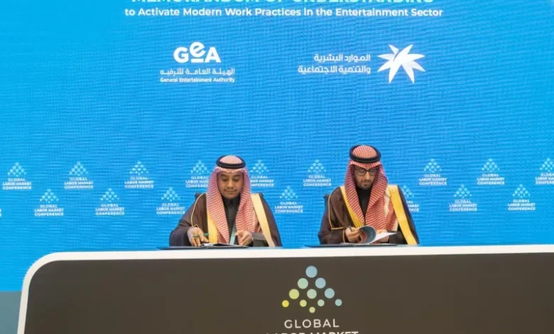 وقّعت الهيئة العامة للترفيه، ووزارة الموارد البشرية والتنمية الاجتماعية، مذكرة تفاهم تهدف إلى تفعيل وتنظيم العمل الحر في قطاع الترفيه، وذلك على هامش المؤتمر الدولي لسوق العمل 2026، الذي تستضيف نسخته الثالثة العاصمة الرياض، بمشاركة واسعة من الجهات المحلية والدولية المعنية بتطوير أسواق العمل.