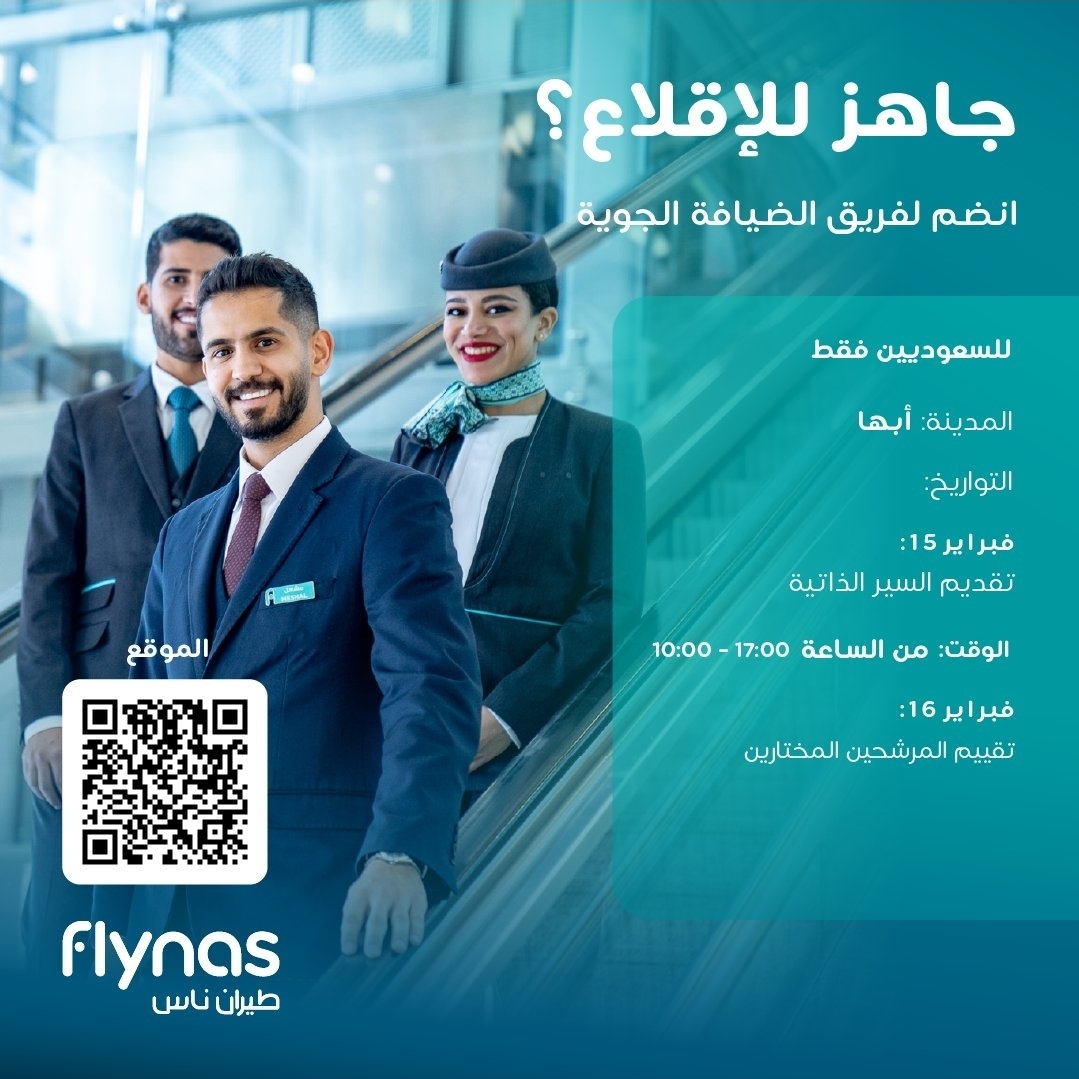 أعلن طيران ناس عن فتح باب التوظيف للسعوديين والسعوديات للانضمام إلى فريق الضيافة الجوية في مدينة أبها، للعمل في بيئة احترافية تهدف لتطوير الكوادر الوطنية في قطاع الطيران والمساهمة في تقديم تجربة سفر مميزة للمسافرين، وذلك وفقاً للتفاصيل الموضحة أدناه.