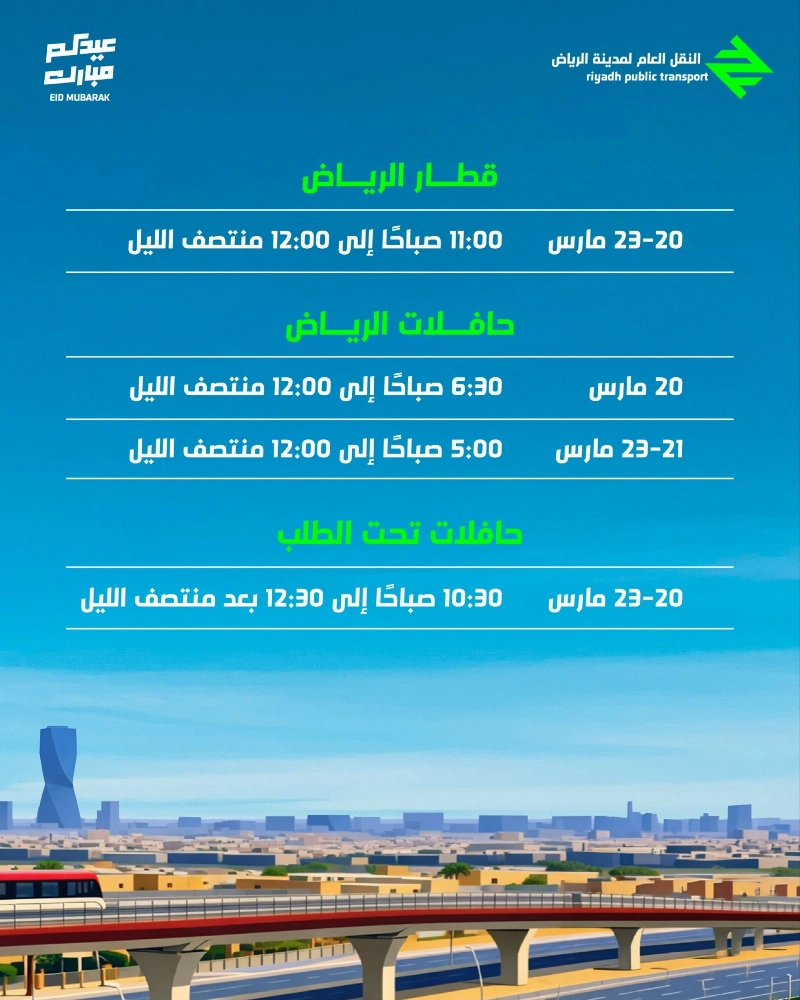 مواعيد تشغيل النقل العام بالرياض خلال العيد