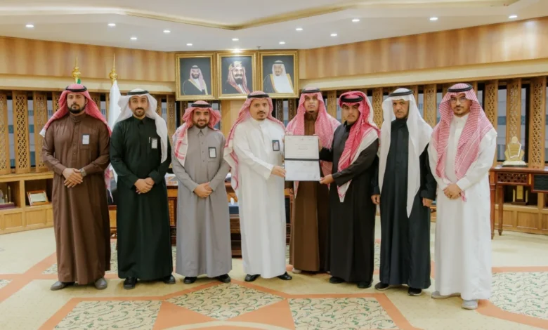 وحضر التسليم وكيل الجامعة للدراسات العليا والبحث العلمي الدكتور محمد الشارخ، وعميد كلية اللغة العربية والدراسات الاجتماعية الدكتور إبراهيم اللاحم، وعميد عمادة الدراسات العليا الدكتور علي اللاحم، ورئيس قسم اللغة العربية الدكتور صالح الصعب.